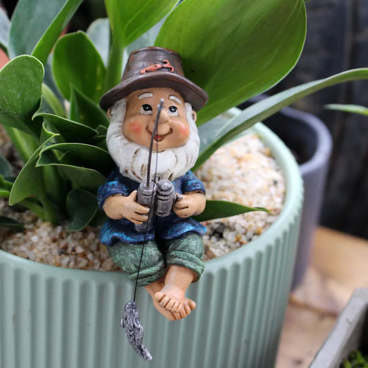Petronia - Suloinen kääpiökukkien ruukunkannatin hartsista, housut oksalla leikkisään puutarhakoristeeseen
